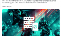 《战地2042》在很多方面的表现都令玩家大失所望,以至于许多粉丝都在等待新作来挽救该系列的口碑。然而,DICE一直在不断进行着更新,添加了几个补丁和内容,一个聊天功能也很快到来。DICE已经确认,《战地2042》即将在发布4.1.1补丁,支持全面聊天,这项功能在默认情况下会关闭,但一旦打开,玩家就可以与对方玩家进行一些友好的聊天,而实际友好情况还有待观察,这项功能实际是玩家要求了一段时间才添加的。《战地2042》已登陆PS5、Xbox Series X/S、PS4、Xbox One和PC。