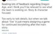 《龙腾世纪》新作正在开发中,昨天在报道时官方表示将会加入“实时(Live)”要素。这里的实时到底是什么意思?BioWare总监Casey  Hudson在Twitter上进行了解释。Hudson解释说,“看了很多玩家对《龙腾世纪》的反馈,我觉得,当你看到我们的团队正在开发的东西时,你就会释怀。新的《龙腾世纪》游戏仍然专注故事和角色上。现在尚处在开发早期阶段,不好透漏太多细节。但我们所说的live,只是意味着在主线剧情之后还会不断设计新的故事。”实际上这里的Live要素,也就是说,新的《龙腾世纪》游戏也会采用现今流行的游戏服务模式(Live  Service):在游戏发售后不断推出后续的内容支持,追加新的剧情。只不过后续的内容,是传统的DLC还是《圣歌》那样的在线共