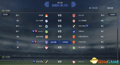 玩法说明:此界面主要显示的信息为玩家当前所处的大师联赛,可查看从第1天到最后1天的所有比赛赛程。供玩家提前针对比赛对手做好准备。
