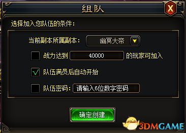 2.创建副本队伍可以设定最低战力要求,玩家需要达到战力才可以进入房间。