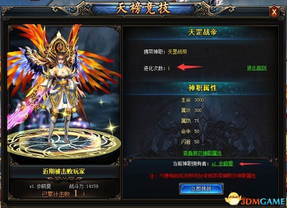 2.天/地榜上共有6个位置可以挑战。越高层的天神挑战难度越高。