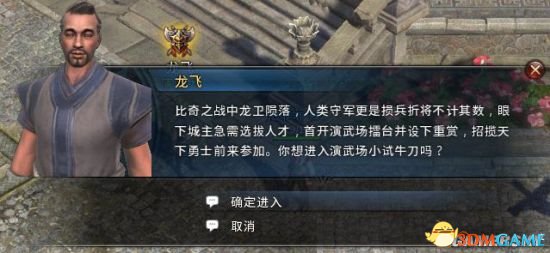 1、点击NPC‘龙飞’,选择【确定进入】;