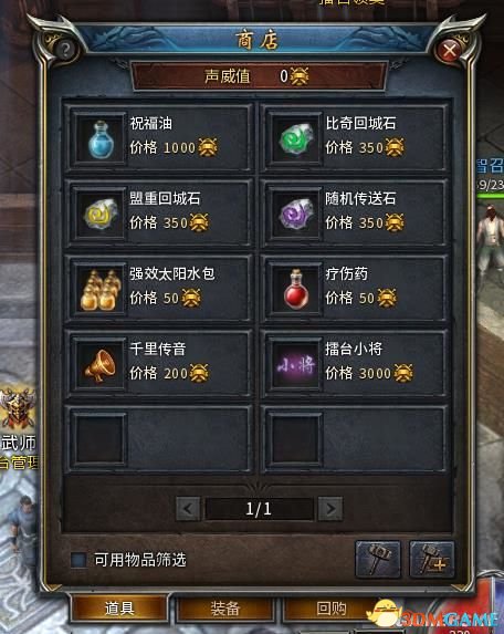 1、声威值:等同于货币,可用于在演武场NPC‘吉叔’处,购买各种道具:鞋子、腰带、称号(有属性)、披风、祝福油等。例:在高等级高激烈对抗程度的比赛中,玩家在全胜的前提下,参与2-3天即可获得1瓶祝福油的声威值。