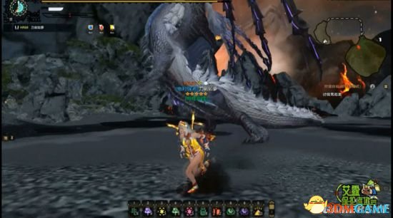2.压地。同开场压地,在荒厄龙与地面接触之后,利用突进斩迅速贴近荒厄龙,然后乱舞输出,在它起身之后,可以用旋子或者落叶斩向前位移继续贴身输出。