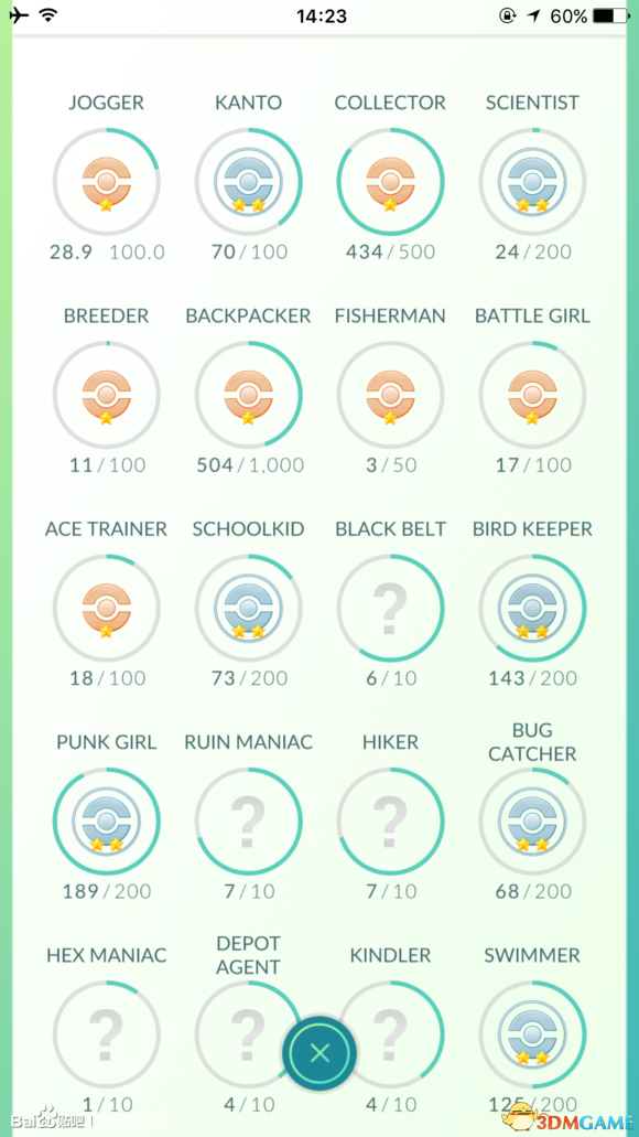 图中目前的记录是走了29公里,抓到了70种精灵,累计抓到434只