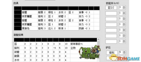 用匠护石的好处是在匠业物之余还能剩6个孔,可以考虑镶几个珠子加上零碎的技能点凑出极磨、见切1、根性、水属性攻击强化1、耐震中的一个。匠3和锋5的选择一般是根据自己的经济条件,毕竟匠3比锋5贵不少(以自己所在的区为准),同时多出来的副技能只起到锦上添花的作用。