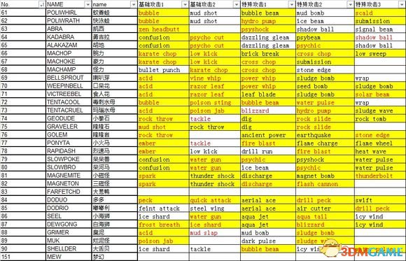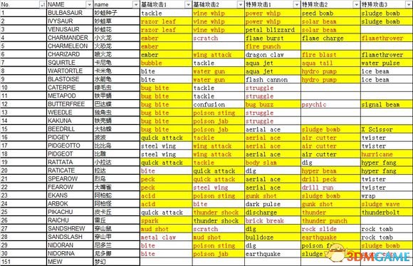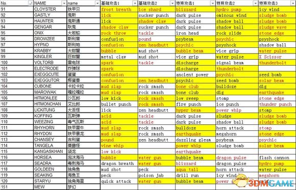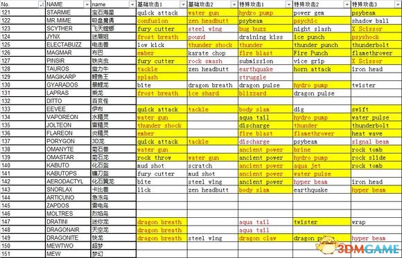 No.121-151精灵技能推荐: