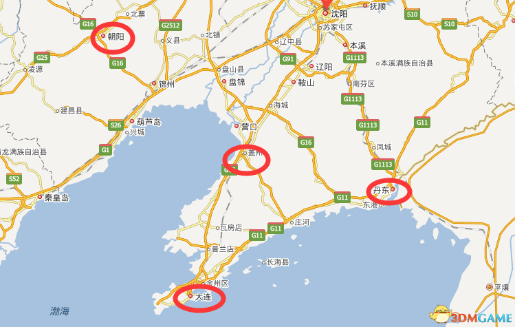 中间的红圈左下大约鲅鱼圈的位置(楼主南方人,对东北地理不熟,如果有错请指出),对照ingress的图片就可以明白我的意思