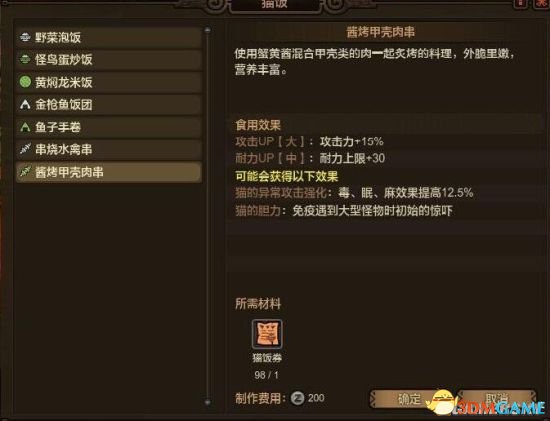 酱烤甲壳肉串 攻击力加15%