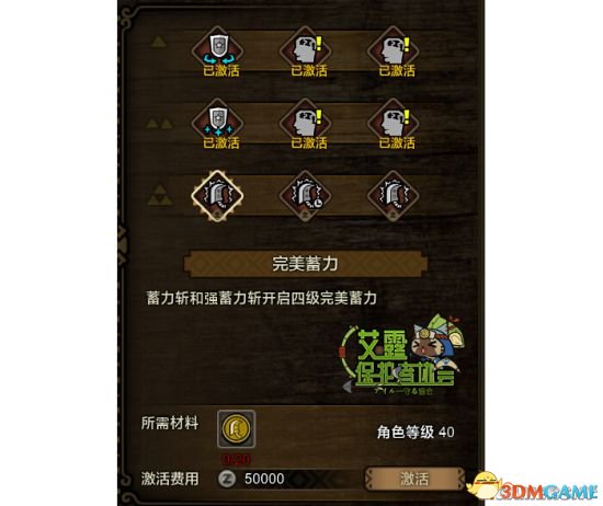 完美蓄力(蓄力斩和强蓄力斩开启四级完美蓄力),在开通这个天赋之后大剑的伤害又迎来了新的提高,四蓄以为着更高的伤害加成,能让大剑蓄力斩的伤害达到一个可怕的地步。