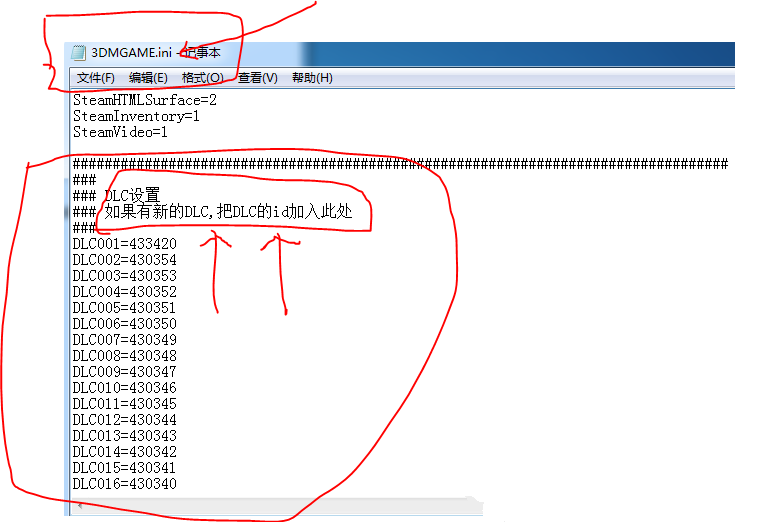 例如1.7.0的学习补丁,把DLC041=506801按照顺序自己加上去就行。