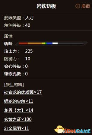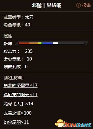 1,轰龙系自带短紫斩,225攻击-13会心等级