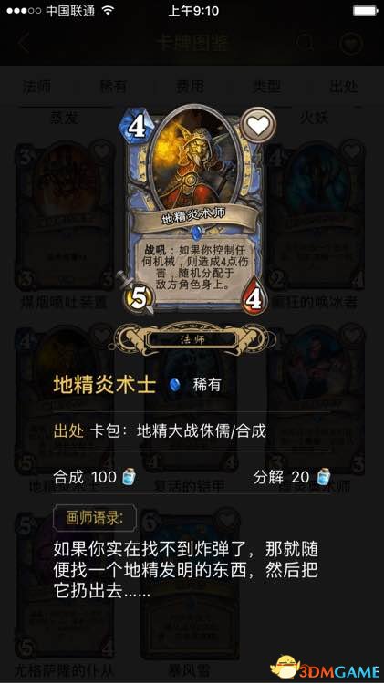 煤烟喷吐装置:这张只能说可以拿,属于一张一般的牌。低费伤害法术多可以适当加分,机械配合也可以加分。抓位:有机械配合,较多伤害法术(5张以上)