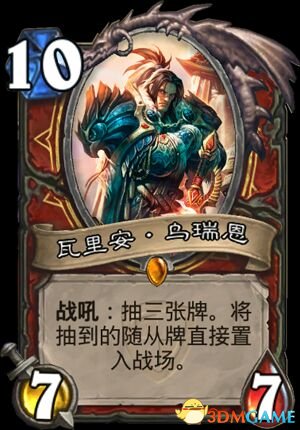 24、瓦里安 乌瑞恩,牧师爹,虽然我没玩过魔兽,但看到暴雪WOW的CG宣传片看到瓦王对儿子的父爱,对国家的爱,我也是潸然泪下,确实是个英雄人物,上个版本瓦王评价很高却被弃置不用,这个版本慢了下来,大神们也证明了瓦王确实是张非常强力的橙卡,后期的过三卡直接能左右对局