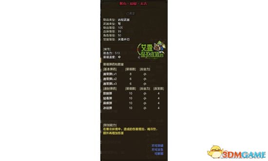 所以弄不到图-1速射弩的玩家也不必担心不能玩这个流派,有下面这个缩水版的弩也能产生不错的效果。如果你要说连下面这个弩都弄不到那我也没什么好说的了,毕竟这基本是垫底的属性了。