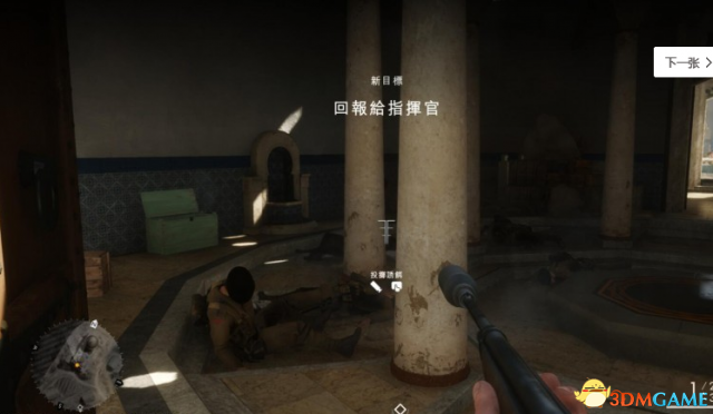 依旧建议简单难度,开始三辆车来的时候马上标记,这样基本全图的敌人都能看到了,起始位置右边有个水塔下面有武器库