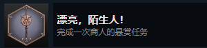 漂亮陌生人就是成就之一,解锁有一定的要求。玩家需要“完成一次商人的悬赏任务”,这样就能解锁成就了。
