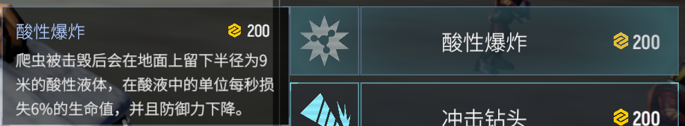 这个科技是爬虫引燃科技的替代品,让爬虫拥有了处理巨型单位的能力。尤其是面对距离比较近的巨型单位,爬虫的酸性爆炸可以很好地处理掉。