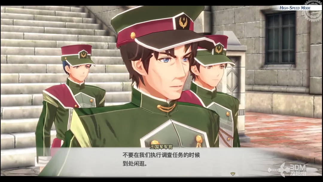 出门后进入剧情动画,和王国军队对话,王国士兵故意刁难