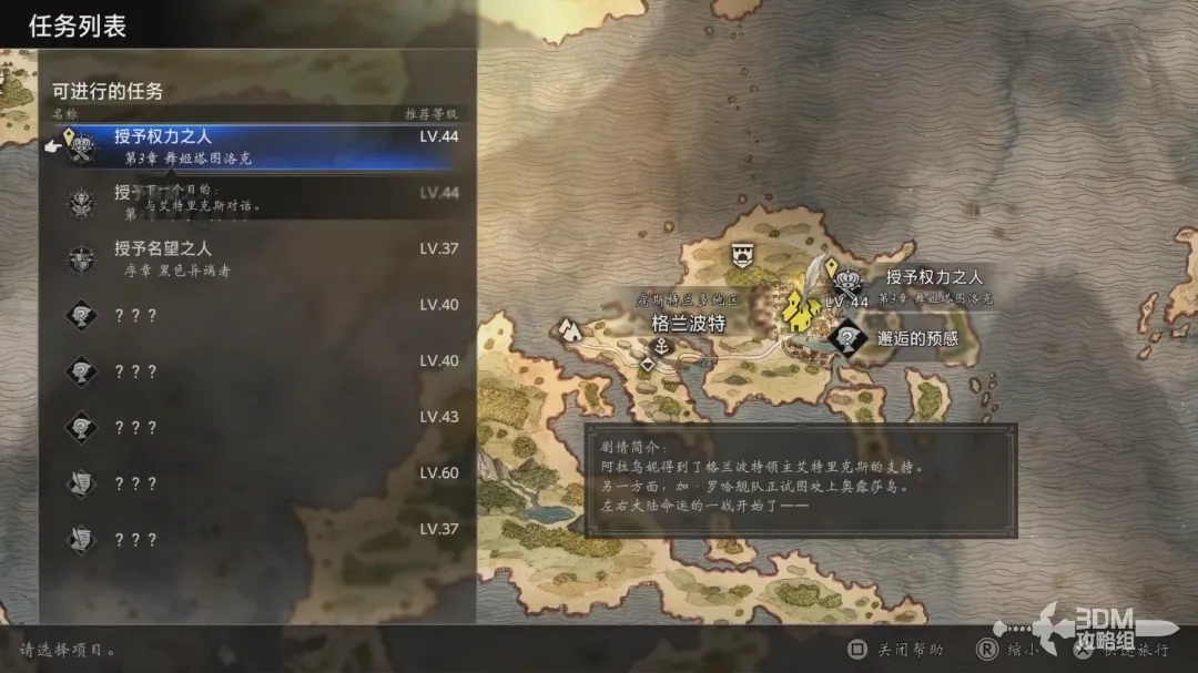 第三章推荐等级较高,如果等级不够可以先做另外的一条主线。