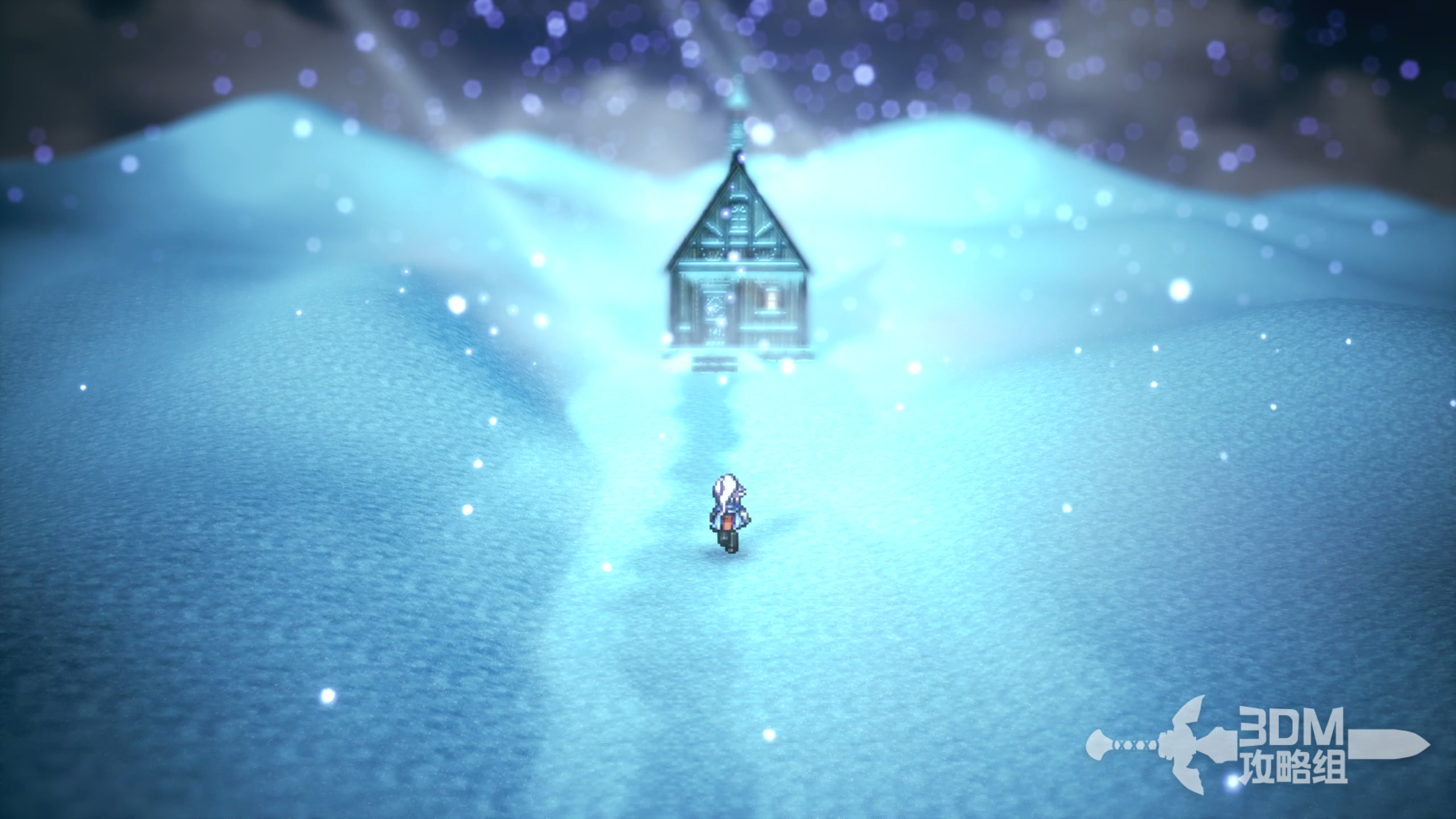 前往这个世界的雪中小屋。