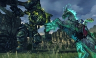 由于巧妙融合了《塞尔达传说》自由探索式游戏系统,第一代《暗黑血统》得到了众多玩家的拥趸。昨天我有幸前往Vigil Studios对动作游戏《暗黑血统》的续作进行采访。对于第二部来说,一些游戏设置比如游戏规模和关卡数量都发生了一些变化。游戏的故事紧接上代剧情,发生在上代男主角War因开启末世而被囚禁之后。Death任务就是到达生命之树清除他伙伴的名字,并且重塑时间回到Armageddon没有发生的时候。 在第一关中,Death需要唤醒一个巨大的Guardian以抵达生命之树。为了达成目标,我需要在本关中收集到三个Heartstone,并且将它们植入到这个沉睡巨人身上。从画面风格可以看出,虽然本作主角Death身形较为矫健,但还是充满了Joe Madueira的粗狂厚重的美术风格。从外观上看,Death与War不同
