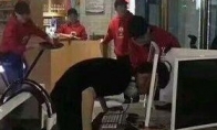 近日,有人在网上曝光了一部视频,画面中一小伙在网吧边打游戏边喝啤酒。更奇葩的是,右手还绑着一根铁链,捆绑着倒地玩手机的“女友”,着实让网吧的玩家惊了个呆!其实从视频中可以发现,这也许是专门恶搞的一个视频,但不管出于什么目的,这样信誓旦旦的打着游戏,边上“女友”还能以这种方式进行“陪伴”,也着实“煞费苦心”了。视频截图: