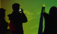 在这次的 SXSW 上,Sony 搭建起了一个 Wow Factory,里面有各式各样奇怪的东西,而下面要介绍的 Cave 就是其中一个。具体来说,这是一个用到了混合现实技术的空间,但其特别之处在于,你不用戴上任何头戴设备,就可以获得不错的沉浸体验。为了实现这一点,Sony 在一个四方小房间的每面墙上都安装了一台 GTZ1 4K 投影机。而营造出一整个实体空间的意义,其实是为了让多人进入(现场的 demo 最多 6 人),从而达到在浸入虚拟环境同时,仍能完成人与人之间面对面交流的目的。在我们进到 Cave 以后,我们先体验了一回「瞬间移动」。系统会让你选择一个城市或是某处标志性的景点,在确定后四周围的画面就会立刻发生对应的改变。简而言之,它给人的感觉好像是直接将 Google 街景投射到墙上,画面是完全静止的,