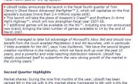 近日UBI的一份财务报告显示,由于1代大获成功,卖出了超过240万份的游戏拷贝。公司宣布将会开发资料片《幽灵行动:尖峰战士2》。有喜有忧,2代将会在2006年末,2007年的初发售。同时定在2007年初发售的《刺客信条》和《兄弟连:地狱高速》将会顺移到2007-2008财年。(2007-2008财年的日期范围是2007年4月1日-2008年3月31日。)对于喜欢《幽灵行动》系列游戏玩家们,这可是一条天大的好消息,而热衷《刺客信条》和《兄弟连:地狱高速》的玩家们就要多等几个月了,最早也得在明年的4月1日才能玩上。《幽灵行动:尖峰战士2》的发售平台和具体消息还有待官方进一步公布。