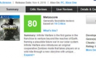 《使命召唤13:无限战争》今日正式发售,首批媒体评分刚刚解禁,尽管出来的媒体不是太多,但大部分都是好评。Polygon-8.5GameSpot-8Destructoid-7IGN-评测中Eurogamer:单人战役,花哨有些无聊(多人还在评测中)Kotaku:单人战役,虽然是太空战,但也不是太离谱,核心还在那里。下面我们先带来GameSpot的简评:优点:单人战役非常优秀,剧情很不错,很多角色令人难忘太空战迷人,足以脱离出来形成一个单独的游戏多人模式很耐玩,深度辅以电竞化的地图上世纪80年代风格浓郁的主题公园地图开启了一个新的僵尸模式缺点:多人模式缺少太空战斗,太令人失望多人模式缺乏创新,尽管素质还不错总分:8分,很好《使命召唤13》Metacritic平均分81分,目前共统计了21家媒体:GamesBeat-