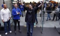 每次苹果新品开售的当天,我们总是能够看到这样的两个景象,那就是苹果商店门口排起了冗长的排队队伍,以及一个个拿着精致白色购物袋成功购买到全新苹果产 品的兴奋消费者破门而出。而且,为了使自己能够成为苹果新品的首名消费者,部分果粉甚至早在产品开售前的数天就在苹果商店外面排队。有消息称,今年全球首名成功购买到iPhone 6的消费者便是特地从美国加州前往澳大利亚排队购买的一名超级果粉。图中这位名为帕特里克-特恩兰德(Patrick Tuntland)的消费者成为了加州Palo Alto苹果商店的首名iPhone 6顾客。苹果首席执行官蒂姆-库克(Tim Cook)出现在美国加州Palo Alto的苹果商店观看新iPhone发售的过程。在苹果专卖店里,库克还与员工们一起为新产品的正式上市进行了欢呼和鼓掌。艾瑞克-胡瑞特(