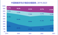 IDC发布的最新手机季度跟踪报告显示,2023年第四季度,中国智能手机市场出货量约7,363万台,同比增长1.2%, 在连续同比下降10个季度后首次实现反弹。 但是需要注意的是,虽然整体市场终于恢复到增长趋势,但是市场表现还是明显低于预期。目前的市场需求主要来自于1-3线城市的高端人群,例如销售较好的产品大多集中于苹果iPhone 15、华为Mate 60、小米14、vivo X100等各品牌的旗舰产品系列。而主要负责走量的中低端产品的销售情况并未明显改善,占据大部分市场份额的中低端用户的换机需求依然没有完全释放。数据显示,2023年中国智能手机市场价格段延续K形分化趋势。600美元(约合4,306元)以上高端市场份额达27.4%,同比增长3.7个百分点。同时200美元(约合1,435元)以下低端市场份额恢复到