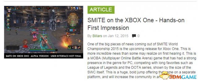 外媒对SMITE登陆XBOX-ONE持大胆乐观态度