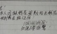小偷留言警方提供图片“对不起,本人因缺钱花,望美女给点钱花……”女子外出忘记关门,小偷趁虚而入盗走其放在床边的挎包。但她没想到,奇葩的窃贼第二天竟又找上门,留下一张字条,想用包内证件进行勒索,并留下了电话。近日,九龙坡区警方将该窃贼抓获。蟊贼去而复返 还留下联系方式“想入非非”5月9日晚上,家住九龙坡区白市驿的年轻女子冯女士外出时没有关门。回家后,她发现自己放在床边的黑色挎包被盗。因包内现金很少,只有几十块钱,所以冯某便没有报警。本以为这事儿就这么完了,不料,第二天冯女士晚上回家后,发现地上多了张纸条,上面歪歪扭扭的写着“对不起,本人因缺钱花,望美女给点钱花花,1000块,收到钱会给你证件。138****6978,切记不要报