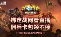 《炉石传说》全新RPG玩法“佣兵战纪”现已全球上线!快来参加斗鱼&虎牙直播平台的精彩福利活动,赢取免费的佣兵包吧!斗鱼平台三重活动 海量奖励等你来拿! 10月13日起,斗鱼炉石传说分区各大主播将征战佣兵营地,为大家带来精彩纷呈的直播内容。同时,10月11起,更有观看集卡,分享赢好礼,有奖视频征稿等多种活动等你参与。50万份佣兵包等你来拿,活动期间还有包括京东卡、战网点等多种好礼,更有机会赢取iphone及电竞耳机键盘!斗鱼搜索炉石传说或点击链接观看: https://www.douyu.com/topic/ybzj虎牙助力佣兵战纪,送出海量佣兵卡包!虎牙助力佣兵新玩法送出50万份佣兵卡包,真正的“点击就送”,首日即可获得3包卡包!还可通过完成简单任务兑换战网点、京东卡、拉格纳罗斯手办等海量豪礼,任务低