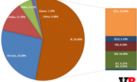 市场研究公司Net Application的最新数据显示,今年4月,谷歌Chrome浏览器的市场份额首次突破了25%。最新数据显示,从3月份至4月份,IE的市场份额 下降0.71%,至55.83%;Chrome的市场份额增长0.69%,至25.68%;火狐的市场份额下降0.19%,至11.70%;Safari 的市场份额上升0.12%,至5.12%;Opera的市场份额上升0.05%,至0.48%。如果对IE的市场份额进行进一步分析,那么可以发现微软正取得不错的进展。最新版的IE11市场份额增长0.82%,重新突破了25%。IE10和IE9的市场份额都小幅下降,而IE8的份额则下降1.26%。IE各版本市场份额去年10月,IE11超过IE8,成为全球最热门的浏览器。随后,这一差距不断拉大。在微软宣布不再对