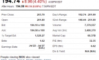 中概股昨夜多支股票遭遇大跌,百度也未能幸免,市值因股价下跌近5%而蒸发31亿美元,时隔半年再次跌破200美元大关。百度北京时间昨夜以低于前一日收 盘价2美元多的价格开盘,盘中最低时跌至192.74美元,跌幅达6%,今早报收于194.74美元,跌幅为4.4%,常规成交量约为740万股,盘后又 微跌0.08%。从前一个交易日的收盘203.7美元跌至今早的194.74美元,百度市值因此减少31亿美元。百度今早收盘数据今早的194.74美元是百度自北京时间去年10月15日收盘跌破200美元大关以来的再次跌穿。就此外在不久前,百度似乎因为2015年Q1业绩未达市场预期而在4月30日的交易中遭遇大跌,5月1日早收盘从前一日的219美元直接跌至200.28美元。中概股昨夜几乎全军覆没,50多支股票今早收盘下跌,其中航美传