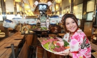 餐馆里有机器人这已经不是什么新鲜事了,但是我敢打赌你肯定没见过武士机器人。在泰国一家日本餐馆里就配备了这种武士机器人,餐厅里有触摸屏,顾客可以通过这个来点餐。然后机器人会根据设定好的轨道滑过来把饭菜端给你,但是饮品,必须由服务员给你。机器人和顾客之间有一层保护玻璃,可能为了防止机器人起义吧。现场视频:图片欣赏: