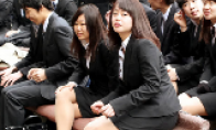 每年日本大学生都要举行求职仪式,不过画面可能跟大家猜想的不一样。近日,日本东京1500名明年毕业的学生参加了每年一度的求职仪式,现场不是繁忙的应聘,而是大学生们观看萌妹的动感的健身操,以此来为自己打气加油。需要注意的是,参加求职大会的学生们,都身着正装,男生西服领带,而妹纸们则是裙子肉色丝袜。大家觉得如何?