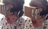 谷歌发明的一款纸盒子(VR眼镜),成本仅十几块,却给人们带来了全新的视觉感受。只要在手机上播放左右格式的3D视频,就能欣赏虚拟现实的3D大片!近日,一段国外一位老太太第一次体验VR眼镜的视频被公开到网络上:这位老太太在观看虚拟现实影片的全程,一会儿惊愕得说不出话来,一会又咯咯大笑,还夹杂各种惊叫。周围的家里人看着老太太也笑得停不下来。这个视频仅发布一天,就吸引了55000次观看,网友纷纷猜测老太太看到的究竟是什么。不过小编更想说的是,老太太你实在是太强了!看这么刺激的东西,心脏居然受得了