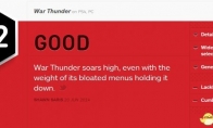 《战争雷霆》是一款很不错的驾驶模拟游戏,让玩家有机会操作成吨的二战期间的载具。画面优秀,音效真实,笔者在自己最爱的P36雄鹰里面度过了许多优质游戏时间,而且免费模式也从来不会让玩家觉得灰心丧气。游戏唯一的缺点是在战斗之前和之后的游戏大厅界面里,因为缺少信息,菜单不完善,使总体驾驶体验打折。《战争雷霆》 PS4 ,PC版 IGN简评7.2 良好《战争雷霆》虽然负载着沉重的菜单界面的拖累,但依然高高地飞在天上。+画面细节到位+大量载具选择+游戏奖励丰厚-用户界面一般-菜单选项累赘