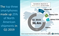 根据数据机构Canalys今天公布的最新智能手机出货量数据,整个北美手机市场2019年第一季度出货量整体降低18%,苹果公司的iPhone XR成了2019年第一季度北美地区最畅销的智能手机。苹果在本季度售出了450多万部iPhone XR设备,占北美手机总出货量的13%。三星的Galaxy S10+和Galaxy S10e则各自占总出货量的6%。按机型看,iPhone XR和三星两款S10手机占到了总体出货量的25%不过尽管iPhone XR成了本季度北美最畅销的智能手机,但苹果公司的出货量仍同比下降了19%。苹果公司在2019年第一季度共售出1460万部产品,而2018年第一季度的出货量为1790万部,同比降19%。尽管销量下滑,但苹果仍保住了40%的北美市场份额,北美地区也成了苹果业绩强劲的地区之一。Ca