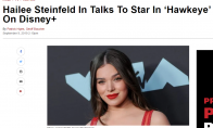 根据DeadLine报道,在《变形金刚:大黄蜂》中饰演女主角的的海莉·斯坦菲尔德(Hailee Steinfeld)正与漫威相关方商谈合作事宜。据称这位九零后有望加盟迪斯尼平台漫改剧《鹰眼》,饰演剧中女主角Kate Bishop。 Kate Bishop将在剧中继承杰瑞米·雷纳的衣钵,成为女鹰眼及少年复仇者。而《复联4》开头出现的练箭小女孩是鹰眼的年幼女儿,而非青春逼人的接班人Kate Bishop女鹰眼。据称漫威/迪斯尼将在这位女鹰眼身上下重注,可能为此发展独立剧集,甚至将其作为一枚棋子打入漫威宇宙。 迪斯尼旗下的Disney+平台将独家播映《鹰眼》剧集,预计由六至八集构成,制作预算远超行业平均水平。