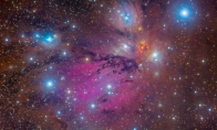 天使星云NGC 2170这是一幅画还是一张照片?在这幅由宇宙画笔完成的经典天体静物中,尘埃星云NGC 2170在画面中心附近闪耀,其也被称为天使星云,在影像中心附近闪耀。NGC 2170反射着附近热恒星的光,与其他略带蓝色的反射星云、红色的发射星云、许多暗吸收星云以及彩色恒星相映生辉。除此之外,画面中少不了气团、尘埃和炙热的恒星。NGC2170是麒麟星座的一个面积相当大的分子星云,距离我们只有2400光年左右。而这幅图像的跨度将超过60光年。心宿二附近的黑色尘埃和彩色星云为什么心宿二和蛇夫座附近的天空显得尘土飞扬却又色彩斑斓?正面被星光照亮的细小尘埃形成了蓝色反射星云。由紫外光激发原子的气态云形成了红色发射星云。而背光的尘埃星云挡住了光,所以看起来很暗。心宿二是一颗红色的超级巨星,也是夜空中最亮的恒星之一,它照