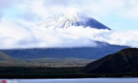 日本山梨县富士吉田市,富士山顶被积雪覆盖。根据山梨县地方气象局的数据,富士山今冬首次降雪比去年晚26天,比往年平均晚22天。
