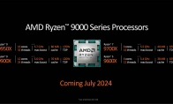 据Vdieocardz独家消息,AMD锐龙9000系列处理器将在今年7月上市。泄露的幻灯片展示了两款锐龙9处理器:9950X和9900X,都采用Zen 5核心,确定在下个月推出。虽然幻灯片被抹去了两款CPU的规格,但其他舅舅曝光了新图,确认了完整规格。AMD计划公布四款SKU,分别是16,12,8和6核心。正如之前所报道的,这些Zen 5桌面CPU和Zen 4系列的时钟频率相比,变化很小,但大多数有着更低的功耗(大概下降了50-40W)。除了锐龙9000系列外,AMD还计划推出新的X870和B850主板,采用同样的AM5接口。