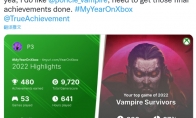 Xbox老大菲尔·斯宾塞近日在推特上分享了自己的2022年Xbox游戏总结报告,并透露《吸血鬼幸存者》是他玩得最多的游戏,时长223小时,他也几乎完成了全成就收集,进度为97%。根据数据,菲尔·斯宾塞2022年在Xbox上总计玩了641小时,共53款游戏,他在《吸血鬼幸存者》一款游戏上就花费了223小时,这意味着他在其他52款游戏上平均只玩了8个小时。