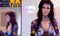人体彩绘Cos最受玩家喜爱,Coser不着寸缕,全身只靠颜料遮掩。近日,国外美女博主KayPikeFashion分享了《LOL》凯莎人体彩绘教学,福利满满。视频欣赏:KayPikeFashion擅长人体彩绘游戏或动漫中的角色,近日她带来的新英雄凯莎的人体彩绘教程,可以说相当给力。在10分钟的剪辑展示了凯莎诞生的全过程,从发型妆容,到身体上服饰的绘制,你觉得完成后的效果如何?视频截图: