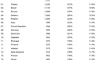 归功于iPhone的持续热销,苹果现在的现金储备已经超过2560亿美元。自然在iPod时期苹果就疯狂吸金,但iPhone的风靡全球使苹果迅速成为世界上最成功最有盈利能力的公司。强大的供应链体系让你几乎可以在全球各地购买到iPhone,但每个地区的定价都存在差异。今天Deutsche Bank今天就公布了33个不同国家选购相同iPhone 7所需要支付的费用。以128GB的iPhone 7为例,最便宜的10个国家和地区分别为美国 - $ 815日本 - $ 815香港 - $ 821马来西亚 - $ 846加拿大 - $ 855新加坡 - $ 874菲律宾 - $ 885瑞士 - $ 886英国 - $ 898中国 - $ 899同样以128GB版本iPhone 7为例,最贵的十个国家和地区如下:土耳其 - $
