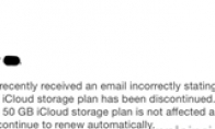 几天前,苹果云存储服务iCloud发生了一个离奇的故障:苹果主动通知用户,部分存储服务已经主动取消。周六,苹果对用户道歉,并表示相关服务并未发生变化。据美国科技新闻网站AppleInsider报道,上周三,许多用户受到了通知,称他们的iCloud云存储服务已经被取消,据悉,收到通知的大部分是购买50GB网盘服务的消费者。4月22日,苹果官方对用户发出了道歉声明,“你们最近收到了不正确的邮件,称iCloud存储产品已经取消,相关50GB存储的产品并未受到影响,将会自动延期。”苹果表示:“对于给消费者带来的不便,我们表示道歉,如果有何问题,请联系我们。”上周的问题发生后,许多苹果云存储的用户在社交网络上热烈讨论,有用户表示,不仅收到了苹果的取消服务邮件,另外自己访问网